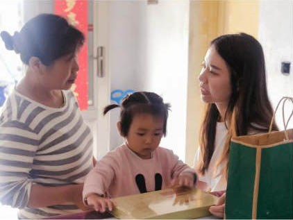 捐赠仪式之后,志愿者们一行走访了村里几户留守妇女和儿童家庭,将爱心营养物资送到他们手中,并和他们亲切交流日常的生活情况。