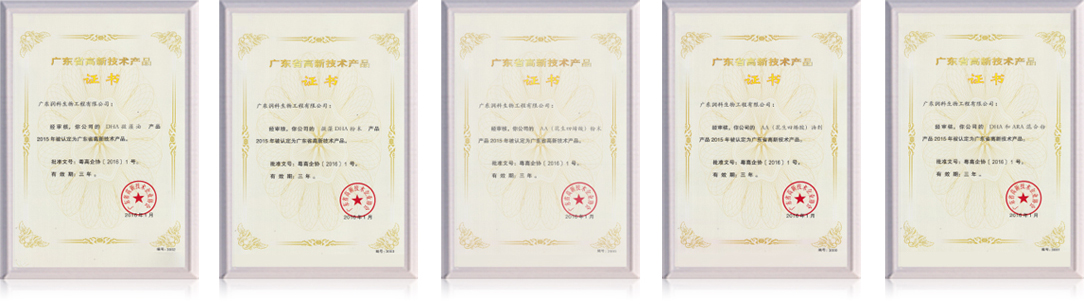 DHA油剂、粉剂,ARA油剂、粉剂,混合粉均被认定为广东省高新技术产品