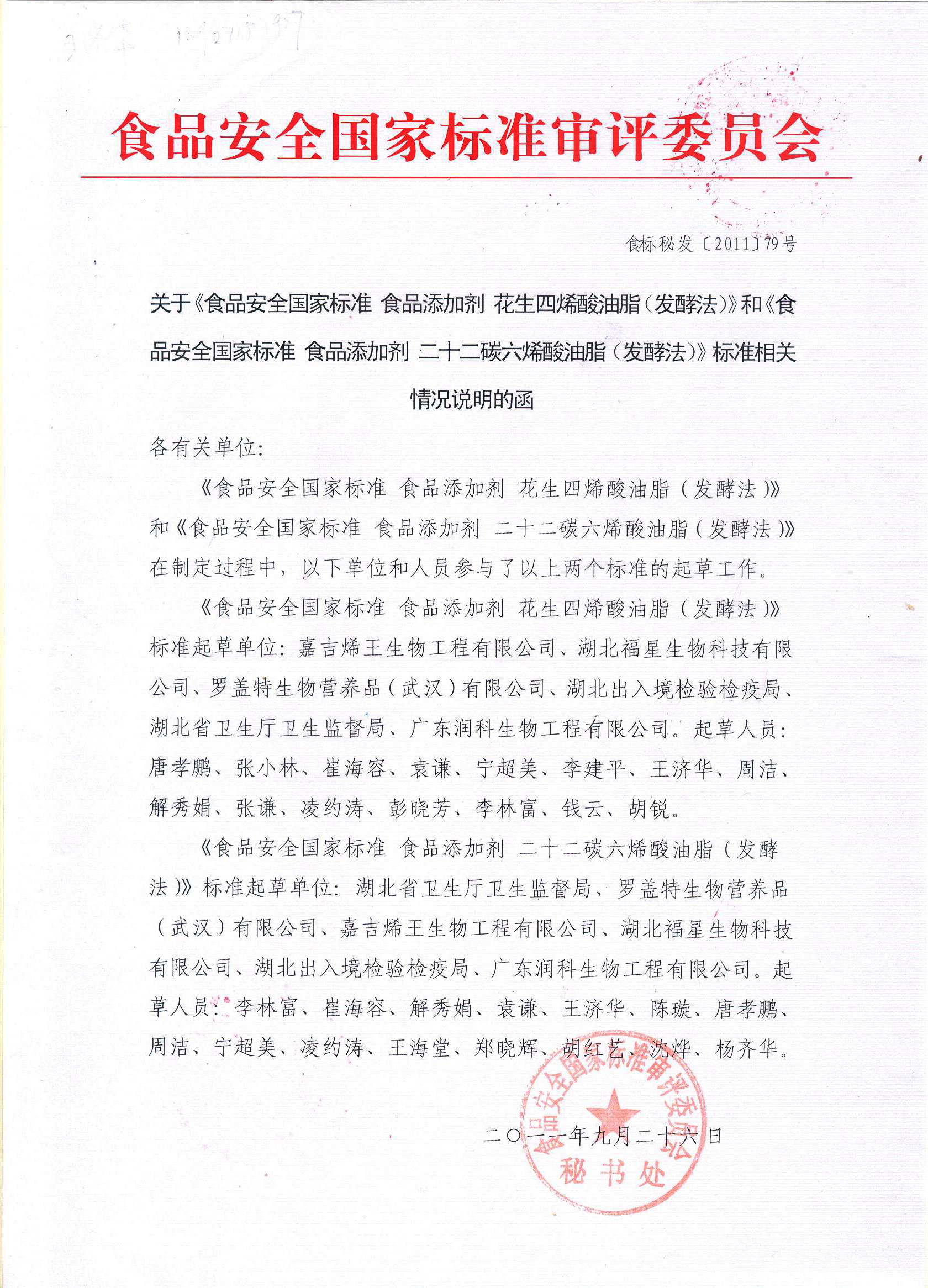 润科生物参与相关产品国家级、行业级标准起草工作,这既是荣誉更是责任与鞭策!2011年9月,公司参与食品安全国家标准审评委员会的两项国家标准《食品安全国家标准 食品添加剂 二十二碳六烯酸油脂(发酵法)》和《食品安全国家标准 食品添加剂 花生四烯酸油脂(发酵法)》的制定,已在行业中普及使用。