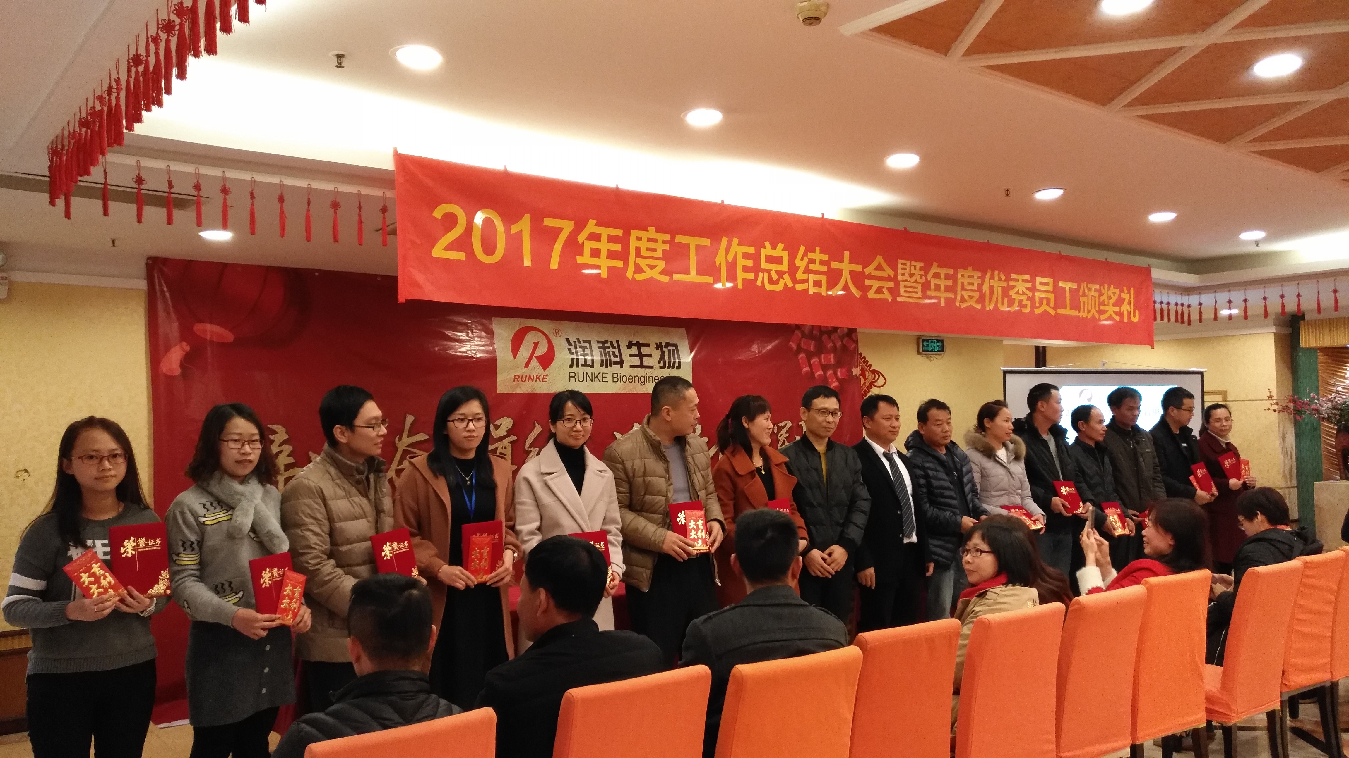 冬阳普照人心齐,春暖花开气象新!为展现公司日新月异、蓬勃发展的良好形势,增强管理层凝聚力、增进同事友谊,共促新的一年续创佳绩,公司于2018年2月12日举办主题为:“辞旧奋楫行,迎新创辉煌”2017年度总结表彰会,总结年度经营业绩及各项工作目标完成情况的同时,表彰在各自工作岗位上兢兢业业、努力拼搏、勇于当担为公司的经营业绩贡献出力量和智慧的优秀员工及管理者,公司还安排了丰盛的迎新晚宴答谢各位一年来的辛勤工作与付出,预祝春节快乐、(旺)年大吉!