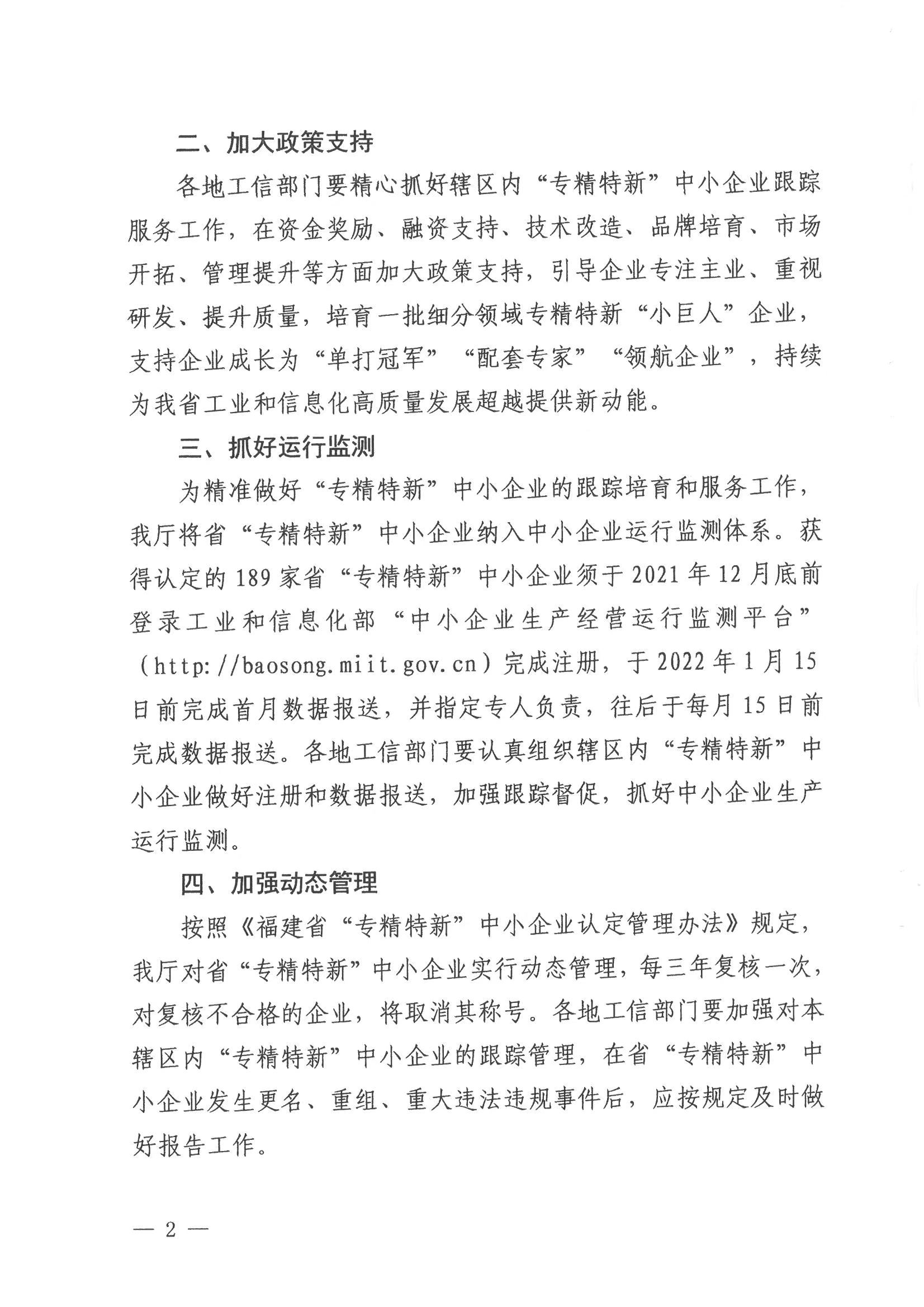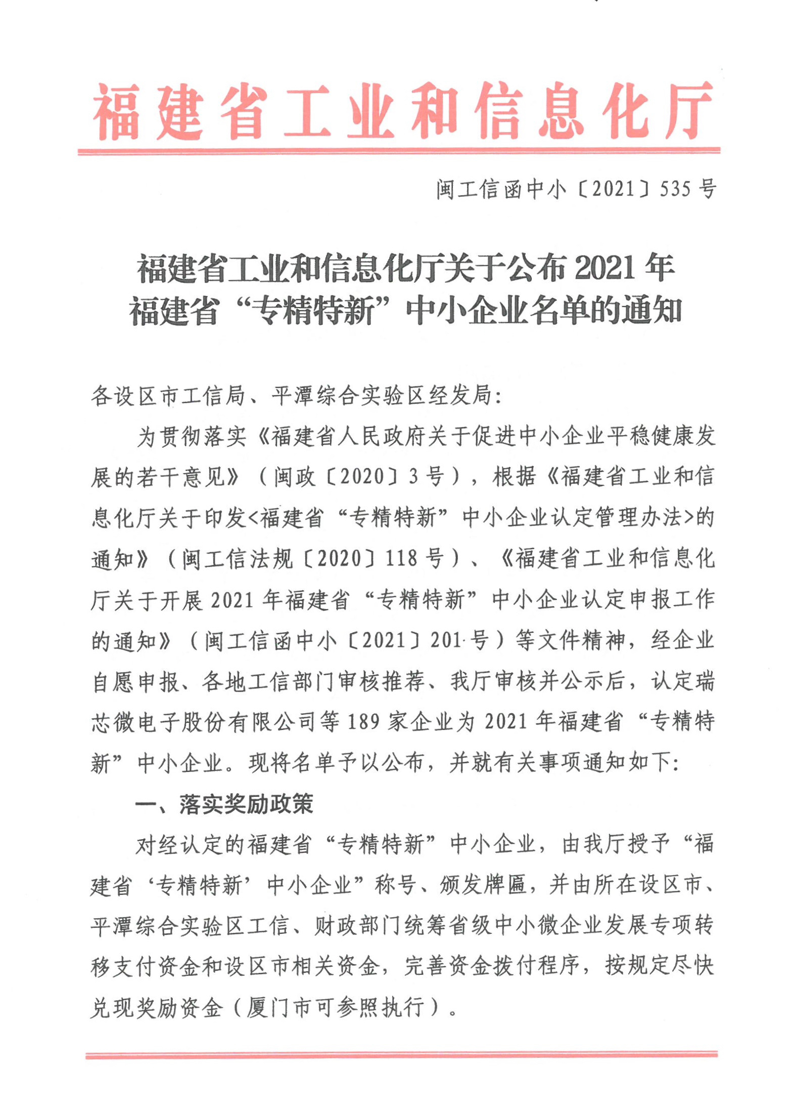 我司获福建省“专精特新”中小企业认定