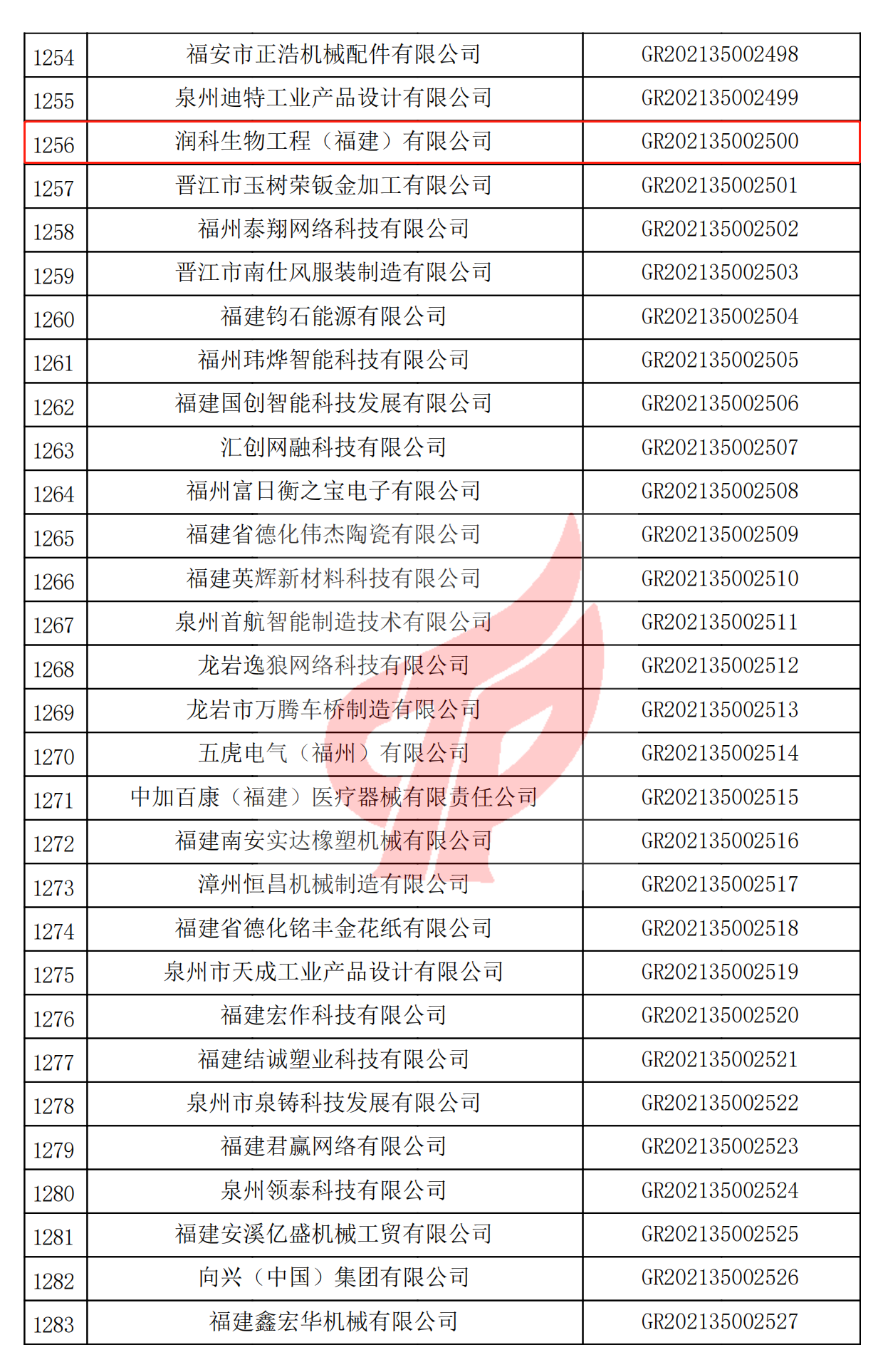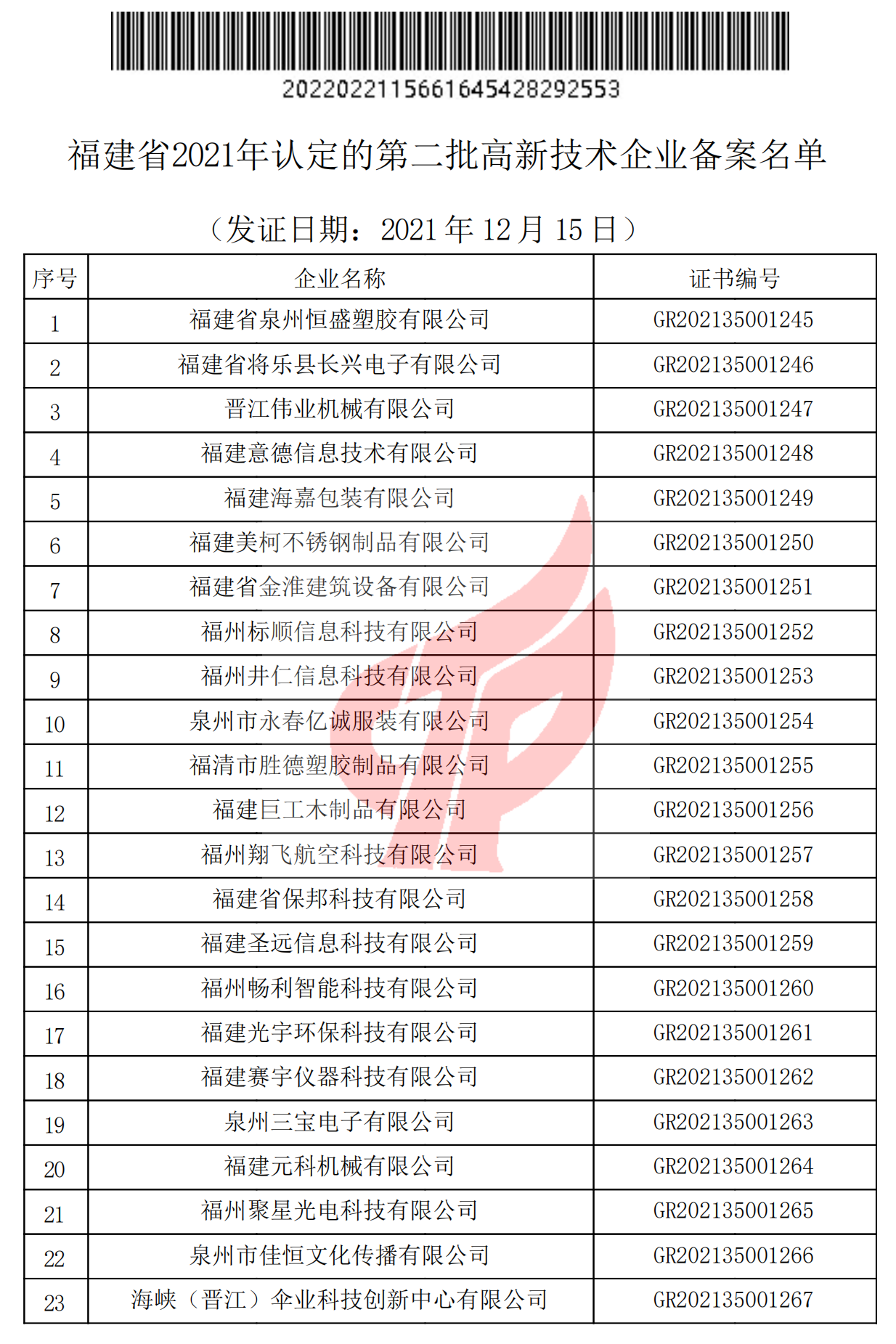 关于对福建省2021年认定的第二批高新技术企业进行备案的公告