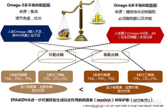 除开心血管疾病,肿瘤目前已是我国死亡原因第2位,据统计1,31-87%恶性肿瘤患者存在营养不良; 15%恶性肿瘤患者确诊时已出现体重下降; 研究报道约20% 肿瘤病人的直接死因是:营养不良,而非疾病本身。 部分患者常有恶病质(cachexia)征象,表现为厌食进行性体质量下降贫血或低蛋白血症等,晚期还会出现疼痛呼吸困难或器官衰竭,恶病质是恶性肿瘤常见的致死因素,其直接影响治疗效果,增加并发症发生率,并使生活质量下降生存期缩短,治疗时间延长和医疗费用增加。恶液质的发展经历3个时期:恶液质前期,恶液质期,难治性恶液质。炎症因子在肿瘤恶液质的发病过程中起着重要作用,而n-3 PUFA可以负性调节炎症瀑布反应,同时,可减少骨骼肌重量减轻的发生,因此, 在肿瘤恶液质的预防和治疗过程中n - 3PUFA扮演着重要角色。